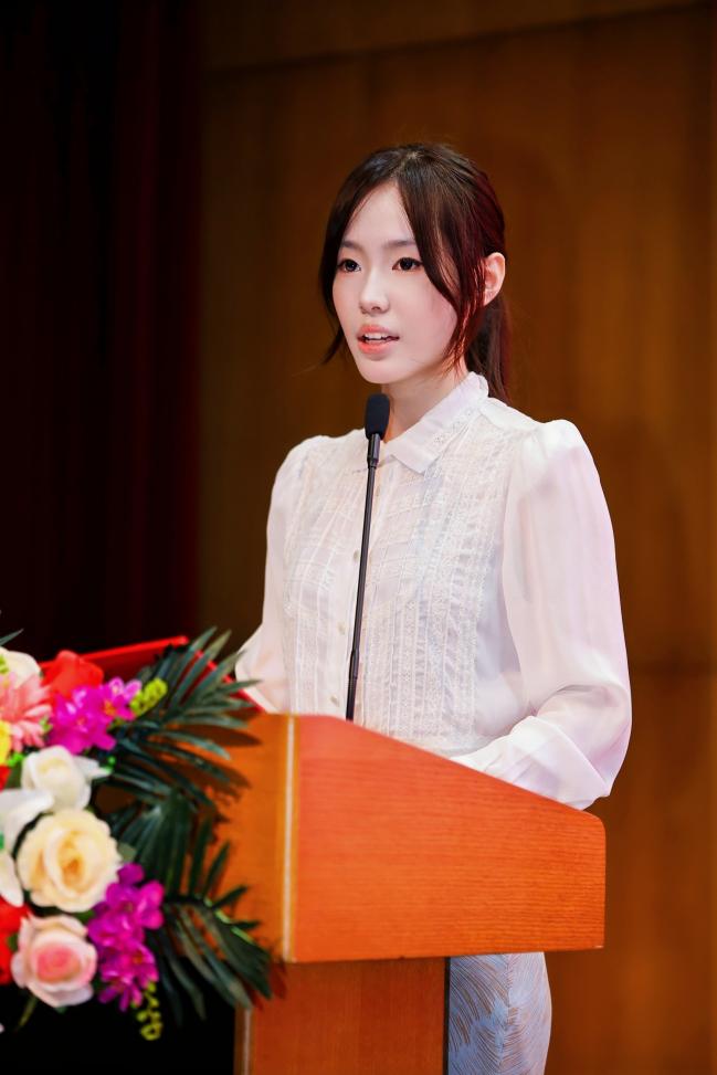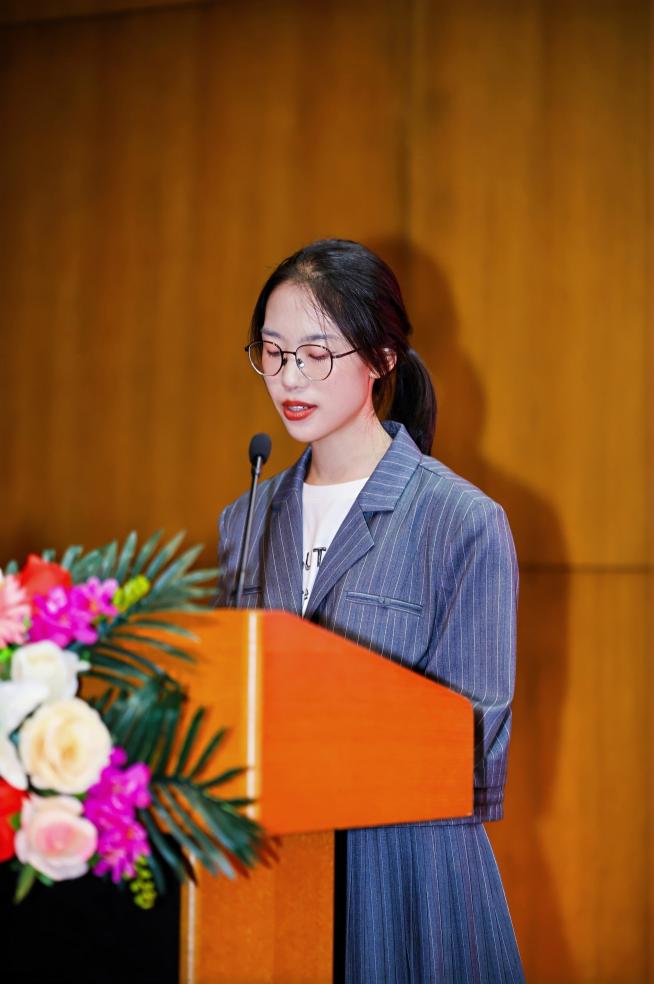 徐雨嘉同学与徐梦缘同学作为学生代表发言。徐雨嘉分享了过去一学年的经历,鼓励新生珍惜大学赋予的每一次尝试的机会。徐梦缘章展望了未来的规划,呼吁全体新生以奋斗为笔、以青春为墨,在大学舞台上书写属于新一代的精彩篇章。