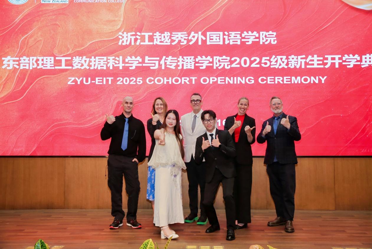 金秋送爽,梦想启航。2025年10月16日晚,东部理工学院2025级新生开学典礼在镜湖图书馆报告厅隆重举行。新西兰东部理工学院执行校长Ryan-Stewart、艺术学院院长Sean Coyle,学校校长雍和明、副校长陈文涛、相关职能处室负责人,学院教职工及2025级全体新生参加典礼。陈文涛主持典礼。