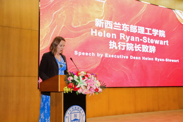 新西兰东部理工学院执行校长Ryan-Stewart向新生致以热烈欢迎。她回顾了两校携手多年的合作成果,并向同学们介绍了新西兰东部理工学院优质的教学资源。鼓励同学们志存高远、脚踏实地,在跨文化融合的学习环境中勇敢探索,成为真正的全球公民。