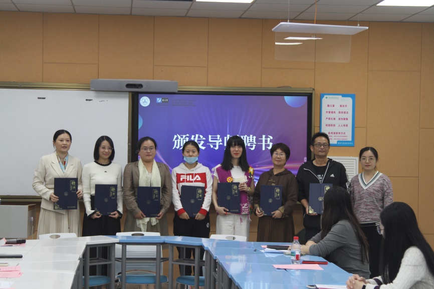 紧接着,结对仪式将活动推向了高潮,王满英副院长(主持工作)、陈初旦副院长共同为导师们颁发了聘书。这一环节不仅是对导师们过往成就的认可,更是对他们未来在指导青年教师工作中所承担责任的期许。