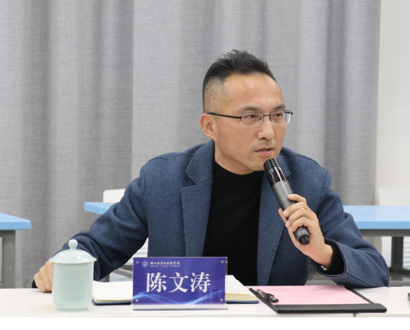 在交流研讨环节,副院长陈初旦、学院督导都春艳及各系主任代表先后发言。与会教师围绕教师角色与学生互动、教学方法与课程设计、国际英语教学实践、数字媒体艺术发展、教师专业成长与学生需求、AI赋能教育变革等议题展开深入讨论,现场气氛热烈。